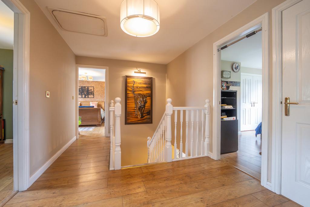 Upstairs, you'll find five generously sized bedrooms, including four doubles. The fourth bedroom is currently set up as a study, offering flexibility for remote work or hobbies. The main bedroom and a second bedroom both benefit from their own ensuite bathrooms, while the remaining bedrooms share a stylish family bathroom.