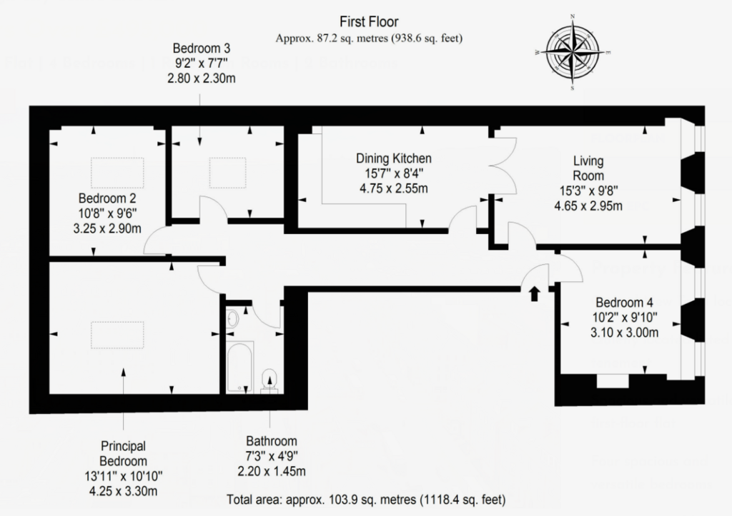 The accommodation comprises: entrance hall, bright open-plan living room and kitchen, four generously sized bedrooms, main bathroom, and additional shower room. The property features gas central heating, timber frame single glazed windows, and is fully HMO compliant. Its historic charm, large layout, and prime location make it highly attractive to tenants seeking city-centre living.