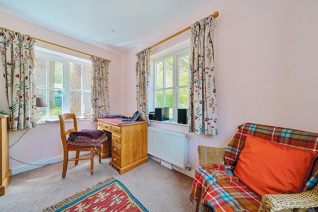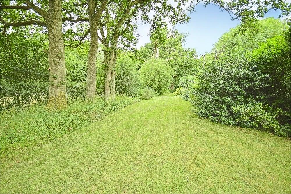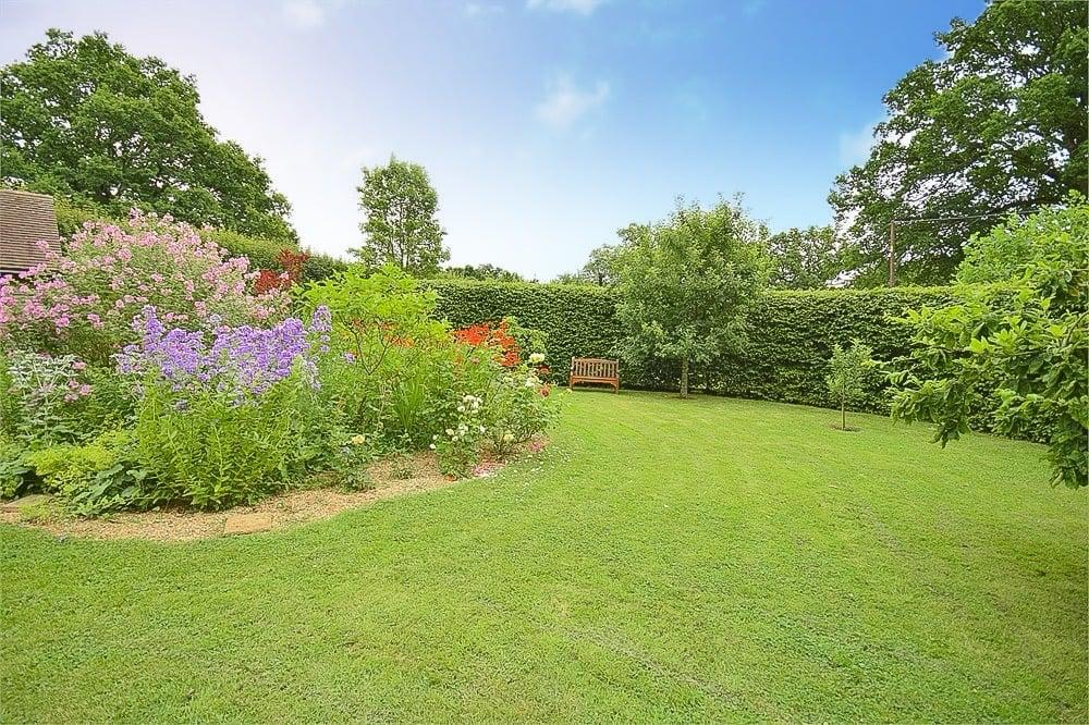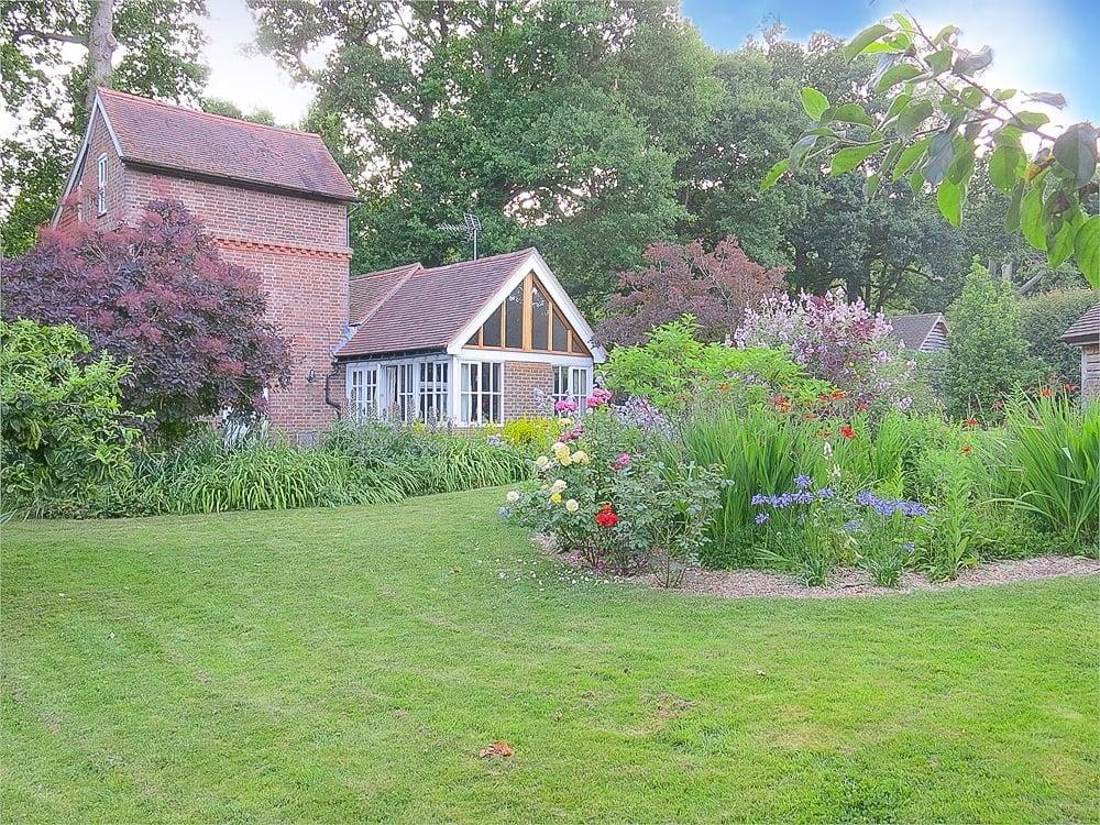 The delightful garden and grounds provide absolute privacy and seclusion and extend in all to about three quarters of an acre. The garden has been well thought out and lovingly cared for and stocked by the present owner. There is an abundance of specimen trees, flowering…established boundaries with an eclectic and colourful mix of both evergreen and deciduous hedging plants, areas of lawn, pergola arch clad with roses, compost enclosure, pond, a circular Hornbeam hedge with central walk through arch topped with roses, a small stand of mature Oak woodland with meandering path behind the garage, further areas of lawn and varied shrubs and bushes.There are also a number of other mature Oak trees within the plot.