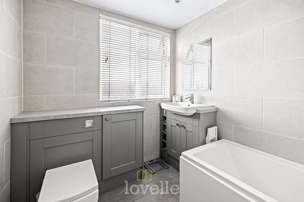 Upstairs, there are three well-proportioned bedrooms and a stylish family bathroom, fitted with an L-shaped bath with shower and screen, a wash hand basin set within a vanity unit, and a concealed WC.