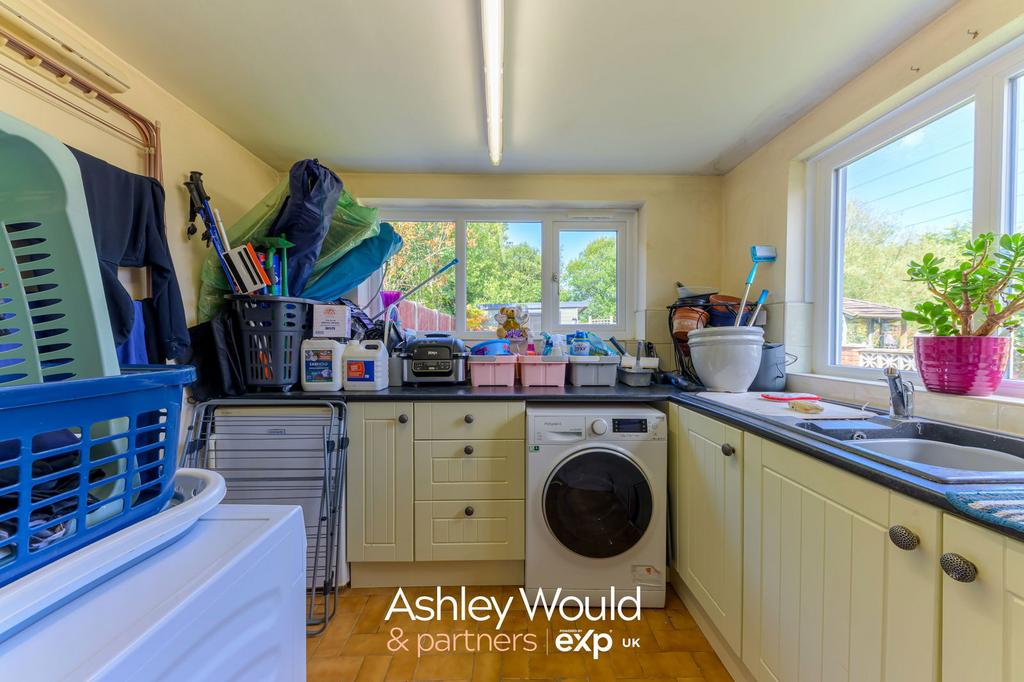 The rear garden has been thoughtfully designed with a porcelain-tiled patio, lawn, and composite decking. A versatile garden room provides the perfect space for an office, playroom, or hobby area, while a rear gate opens onto attractive open green space.
