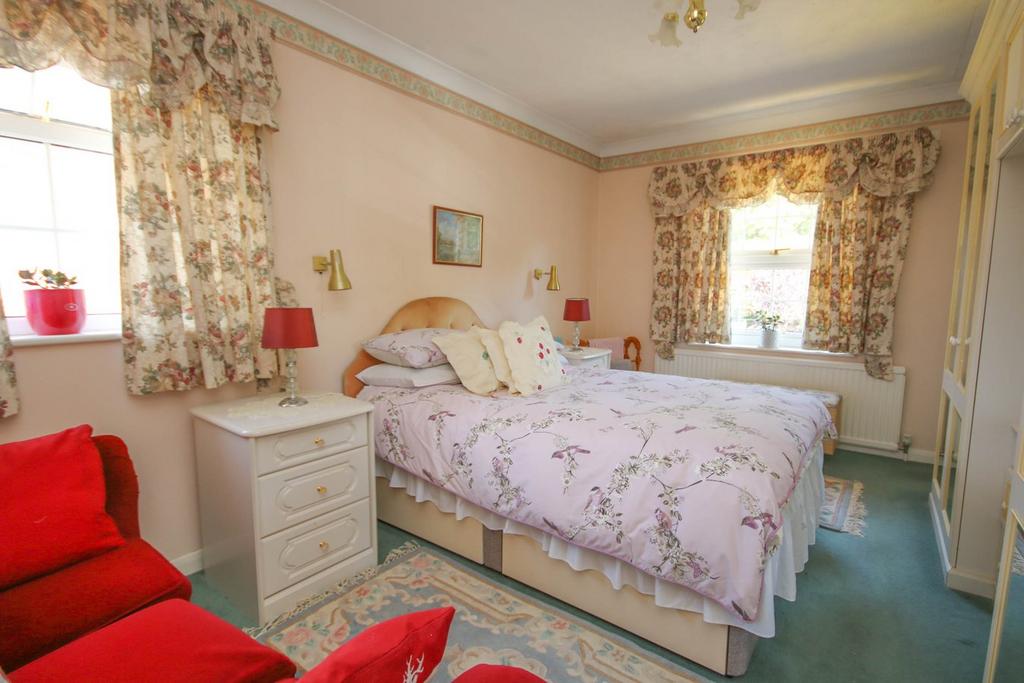 4.77m x 3.21m max into door recess (15' 8" x 10' 6" max into door recess) Twin aspect windows, radiator, range of fitted wardrobes with dressing area and double cupboard above and door into en-suite shower room.