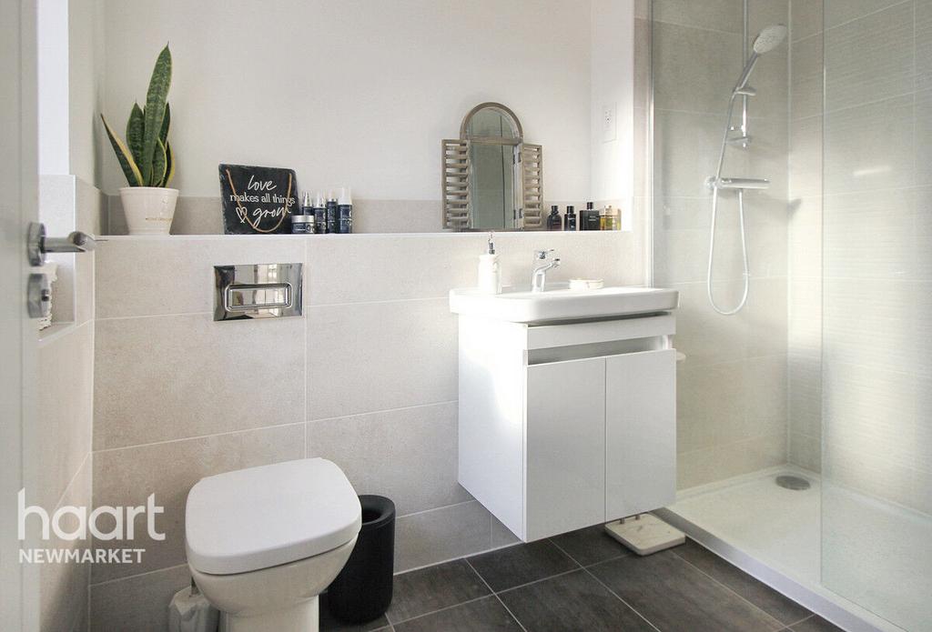 Double glazed Velux window to front aspect, hand wash basin, mixer tap, low level WC, shower cubicle with fully tiled back splash, heated towel rail, tiled flooring.