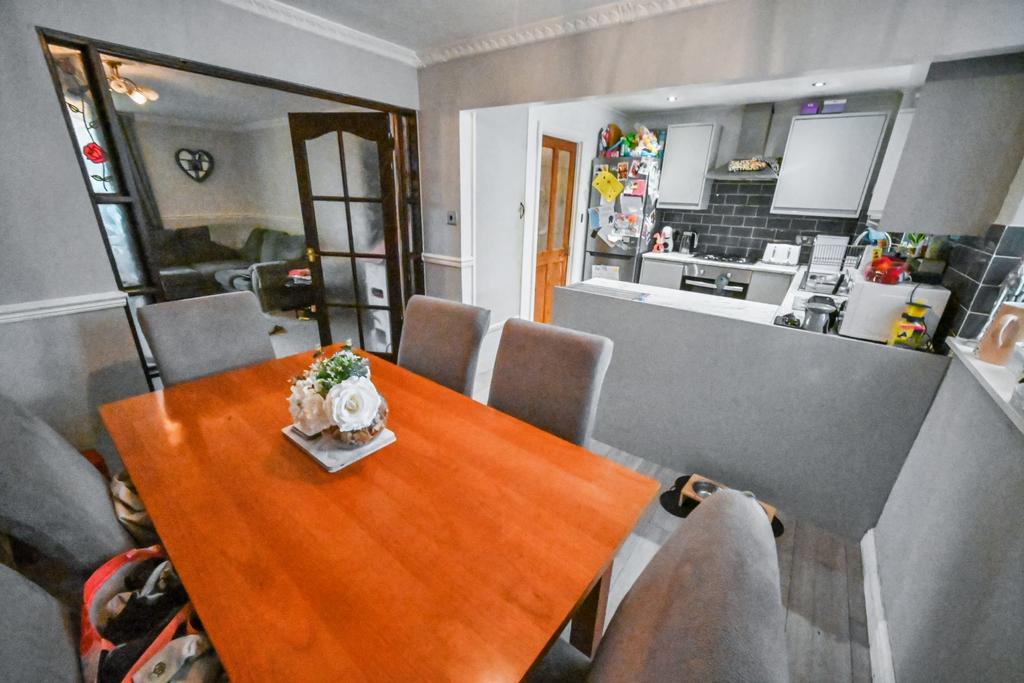 Situated in a popular residential area yet occupying a quite cul de sac location just off Ryefield & therefore convenient for the majority of amenities, this deceptive end terraced house has been restyled in recent years and is an excellent example of its type. Deceptive externally, viewing of the interior is a must to appreciate the well planned interior, utilising the maximum space. With a comfortable floor area of approx., 1096.0sq feet, the accommodation includes reception porch to entrance hall with fitted guest cloakroom & stairs to first floor and the front living room has internal double doors leading to the full width open plan dining kitchen. The kitchen has been refitted in recent years with a grey shaker style suite and offers a superb open space for entertaining guests & families. The ground floor also has a double glazed conservatory at rear with airing cupboard housing the gas fired central heating boiler. On the first floor there are three bedrooms and the family bathroom is fitted with a white suite. At the rear of the house, the enclosed rear garden has been landscaped for low maintenance with gated access to the forecourt. Although the house does not have a driveway, there is ample parking on the street. Within walking distance of local schools (Aldersley High School & Dovecote Primary School), a number of buys routes & shops, Barnwood Road is only five minutes from the M54 motorway and therefore ideal for commuting to principal towns. Perfect for buyers requiring a quality family house ready to just move into and offered with ‘no upward chain’, the accommodation further comprises: