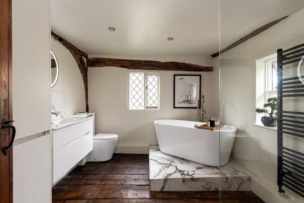 Inside, you'll find a beautifully presented interior where exposed beams meet contemporary finishes, creating a home that's full of character yet effortlessly modern. The layout is light, airy, and decorated throughout in a sleek, neutral palette.