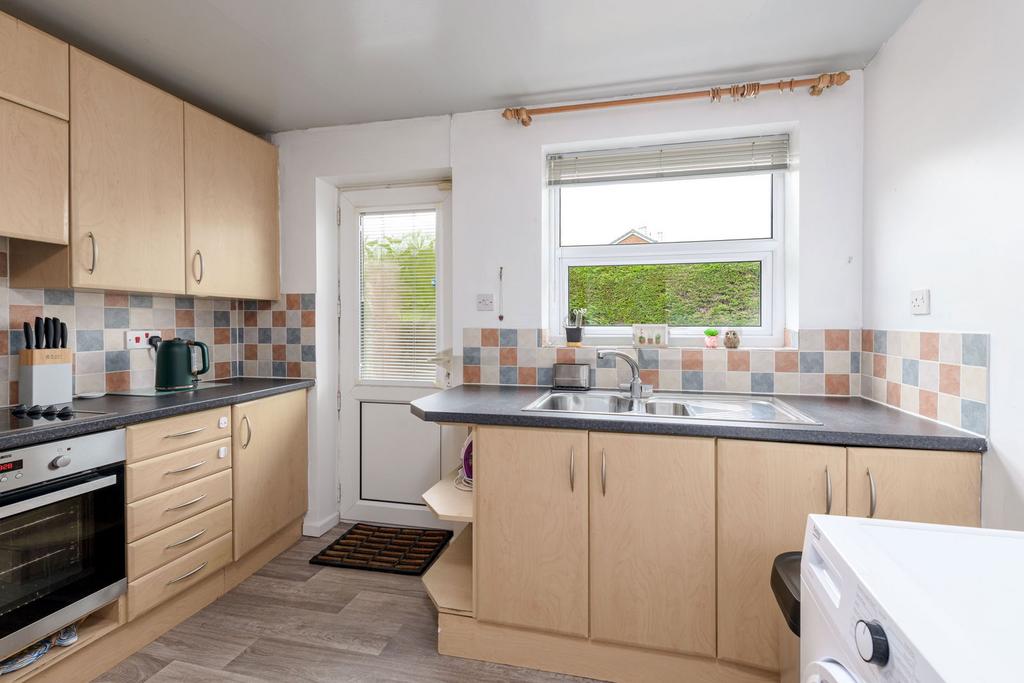 KITCHEN DINER measuring 10’8” x 8’7”- Having a UPVC double-glazed window to the side aspect, a UPVC half obscured double-glazed door to the side with integrated blind system, double radiator, roll edge work surface with inset one and a half stainless steel sink and drainer with high rise mixer tap over, also inset to the work surface is a four ring ceramic hob with an integrated extractor fan above and beneath this is a stainless steel single electric oven. Cupboards and drawers provide storage to the baseline with matching cupboards to the eye line, a cupboard houses and has space and plumbing for a washing machine, with further space for free-standing appliances, or space for a breakfast table.
