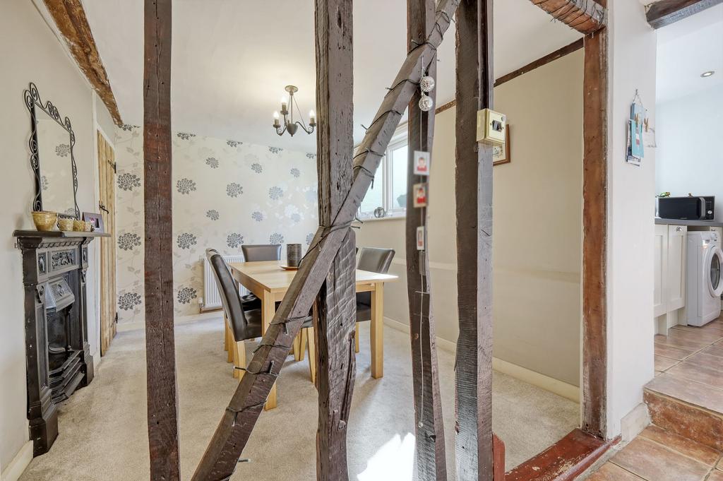 With Upvc double glazed window to rear aspect, radiator, attractive feature fireplace, built in storage cupboard, vertical beams dividing dining and kitchen areas, exposed beams.