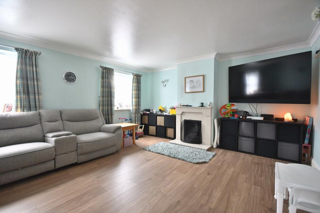 16' 01" x 14' 05" (4.90m x 4.39m) LVT flooring, feature fireplace, two windows to front aspect, radiator