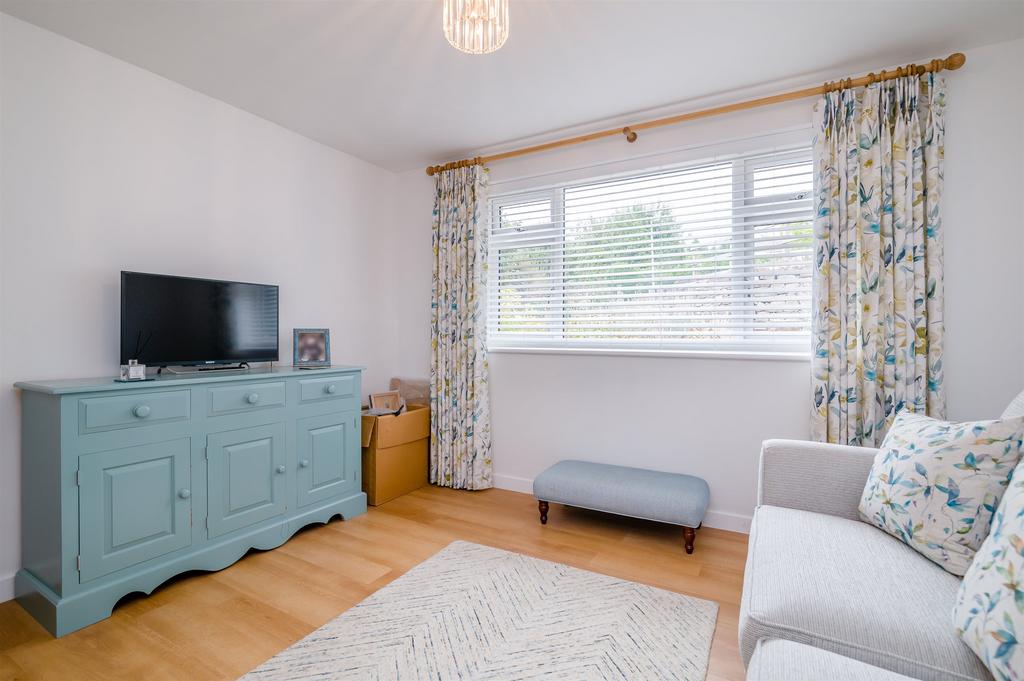 The principal bedroom enjoys a broad rear-facing window overlooking the established gardens, with distant views towards the hillside and church spire. It also benefits from a good range of recently fitted built-in wardrobes.