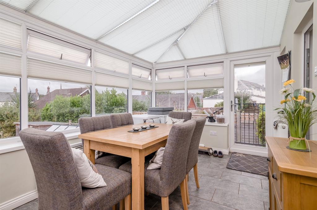 The conservatory serves as an ideal dining area, with room for additional furniture, and enjoys views over and access to the charming, private rear garden.