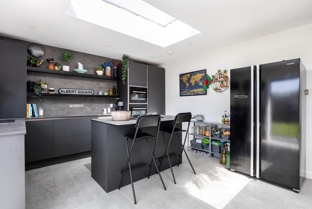 OPEN PLAN KITCHEN/FAMILY ROOM: L shaped, with tiled floor and bi-fold doors to rear garden.