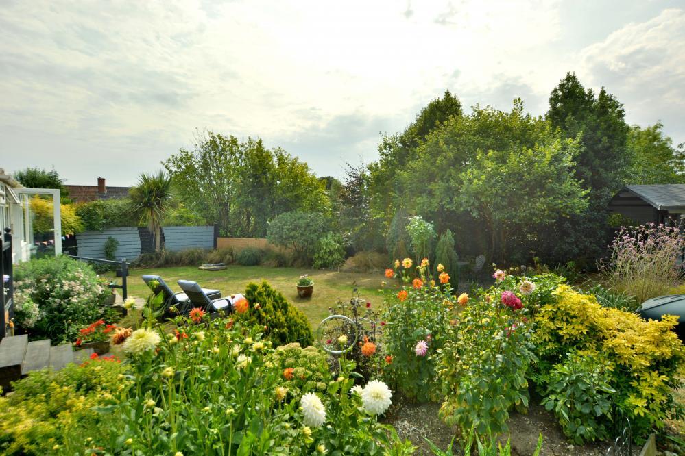 •Outside: The front garden is laid to shingle giving off road parking for a number of cars leading to garage/workshop with electric roller door. The rear garden has a large decking veranda ideal for al fresco dining. The garden is then laid to lawn with established tree, flower and shrub borders. There is also a garden shed and summerhouse and to one side a patio area and to the other a vegetable garden