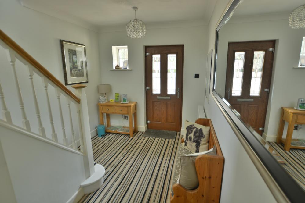 •Open storm porch leading to entrance hallway with modern cloakroom