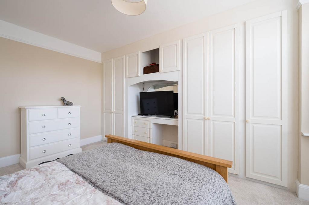 The first floor rooms are connected by a grand landing with attractive balustrade. All three bedrooms are doubles, with two having large banks of integrated wardrobes, cupboards and shelving. A bathroom and separate WC completes the upstairs.
