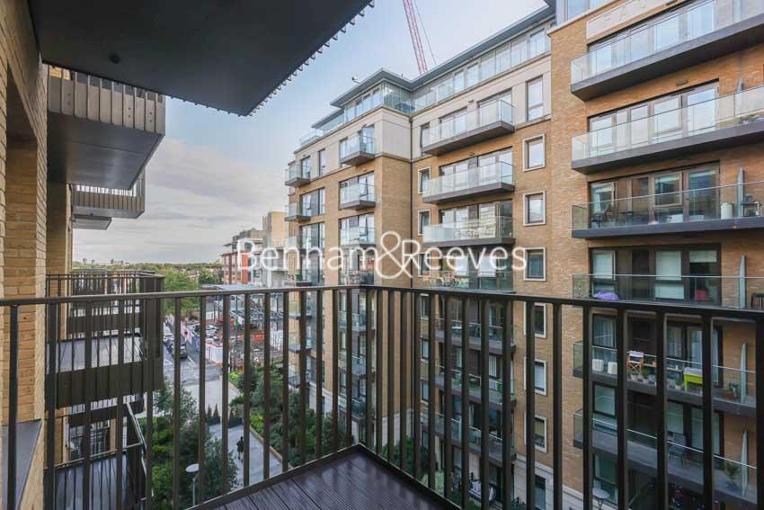 Bright and airy the apartment consists of an open plan reception/kitchen area with dining space, wood floors, floor-to-ceiling windows that lead to a private balcony overlooking the pleasant communal gardens and local leafy area. There is a generous sized bedroom with fitted wardrobes, storage cupboard in the hallway, and fully tiled bathroom designed to a high standard. .