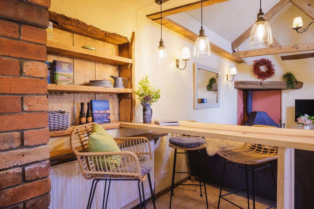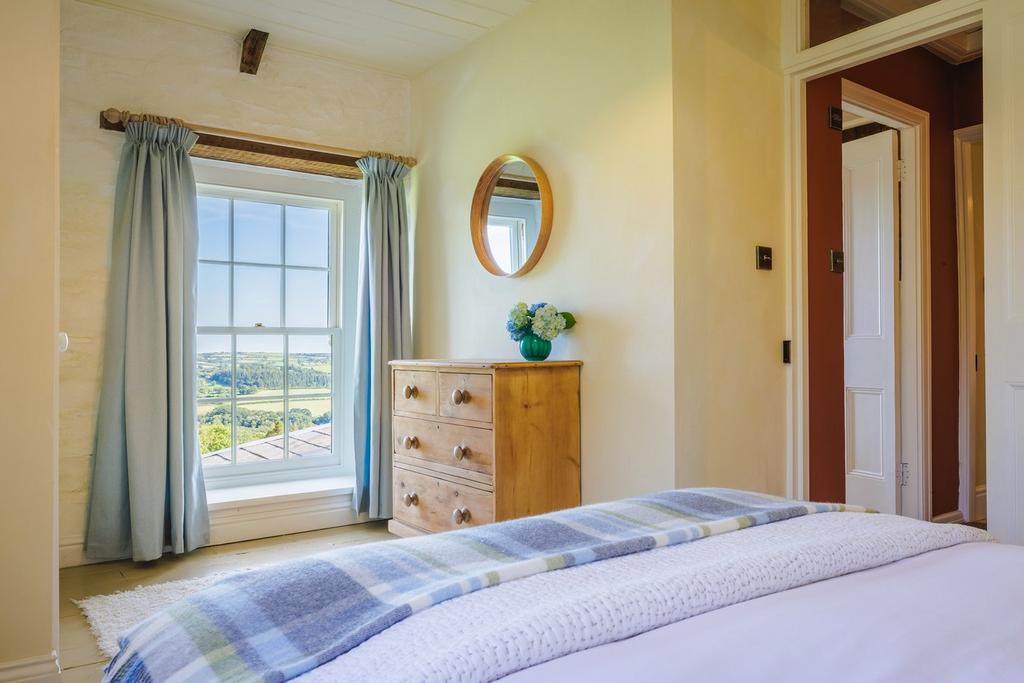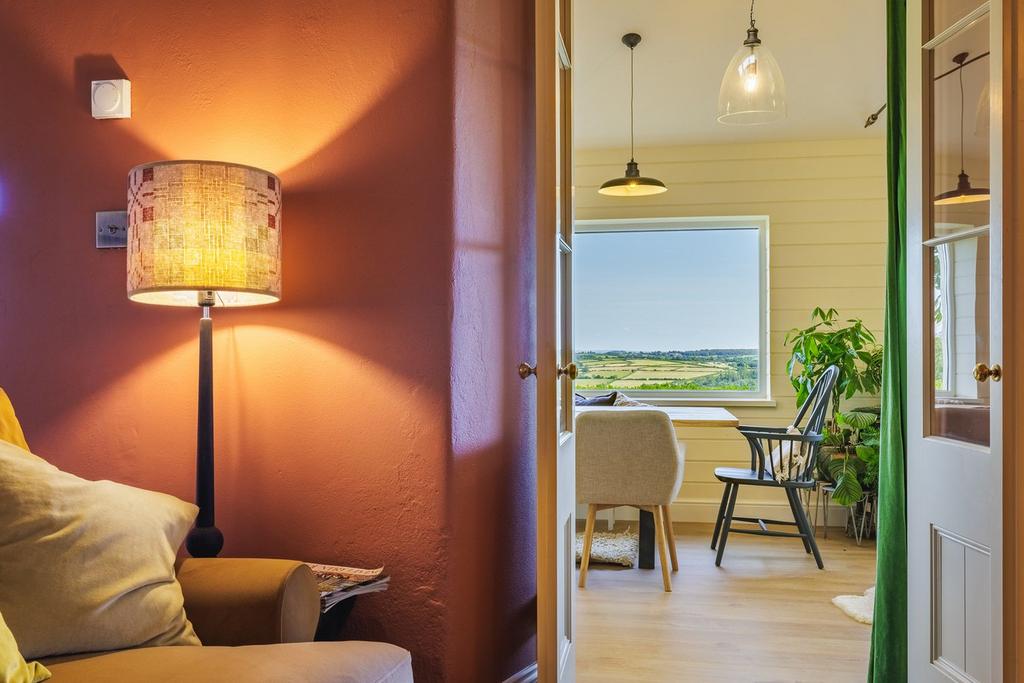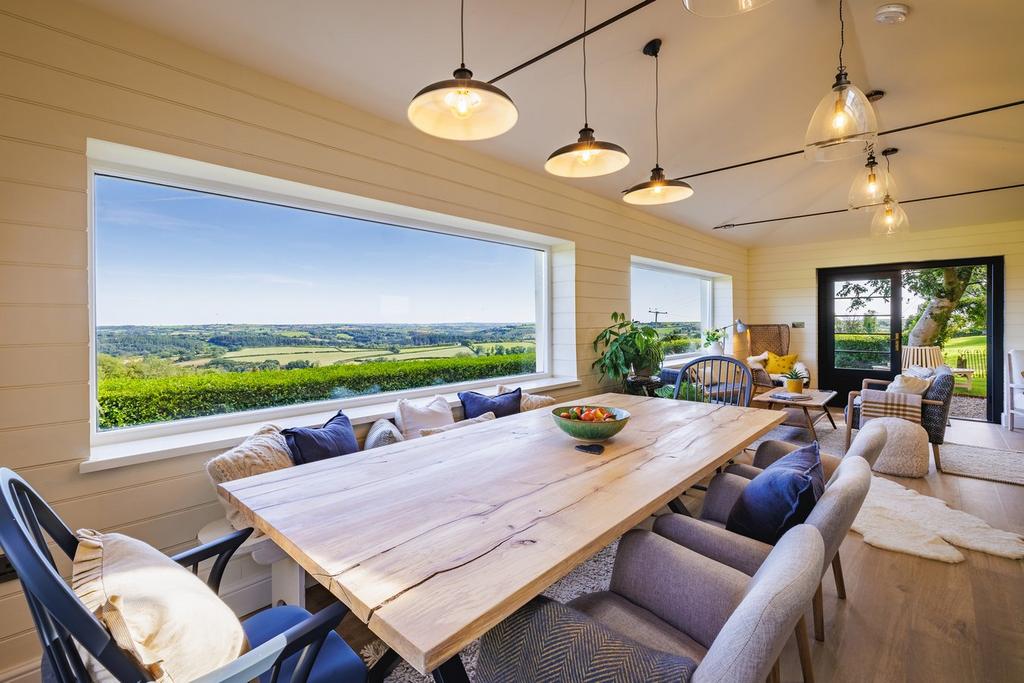 This remarkable space is a true highpoint for the property and has been completely rebuilt over the last few years. Your eyes are immediately drawn to the stunning cinematic windows in the rear wall that perfectly frame the truly magnificent views. Stretching out in front of you are miles of uninterrupted countryside with valleys and forests and a vast ever changing sky that demands your attention as soon as you enter the space. The room offers a superb and flexible space to enjoy, with dining and seating areas along with double doors on each side leading out to the gardens. The room leads around the side of the property and has been designed to allow this space to be divided off to provide a ground floor bedroom if needed. The vaulted ceiling and underfloor heating create a warm, year round space, which promises to provide endless enjoyment to any owner.