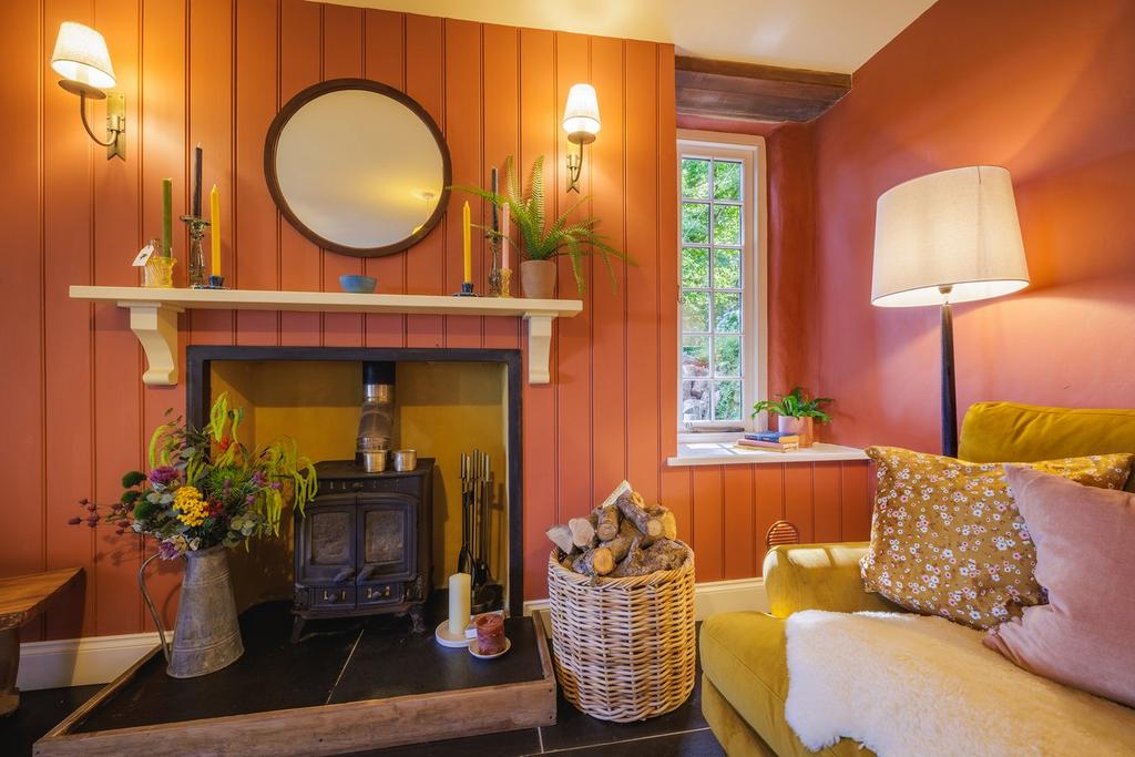 The first reception room you enter is a wonderful snug. This space combines numerous original and character features like the flagstone flooring, wood panelling and built-in cabinetry. There is a wood burning stove for cozy evenings with a doorway leading through into the main sitting room and a door in the rear wall leading into the kitchen.