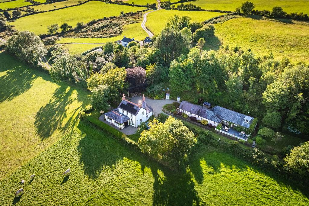 Ardwyn is approached over a shared driveway that has panoramic views and leads you down to the gated gravel drive that takes you to the property. There is a large parking area next to the main home with plenty of space for Ardwyn and the cottages. Here you will find two large wood stores, one built of stone and one of wood. Ardwyn enjoys a gated garden that surrounds the home and offers numerous spaces to sit out and enjoy. To the western side there is an area of hard standing, currently used for seating, with an outside lavatory in the corner of the garden nestled under the magnificent beech tree. To the eastern side of the home, you find a lovely enclosed garden with established fruit trees and a greenhouse, with all parts of the gardens enjoying picturesque views over the valley.