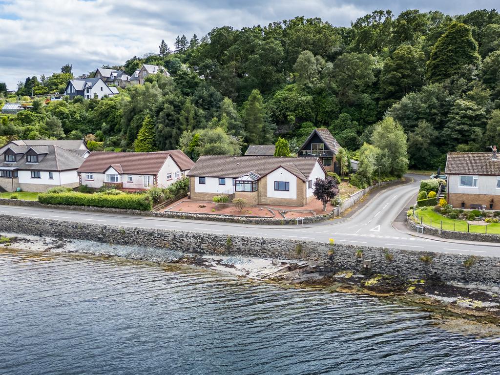 Located in a cul-de-sac, adjoining the Shore Road, this detached bungalow is situated on an elevated site, providing sea views of Holy Loch, the Clyde and the surrounding area.