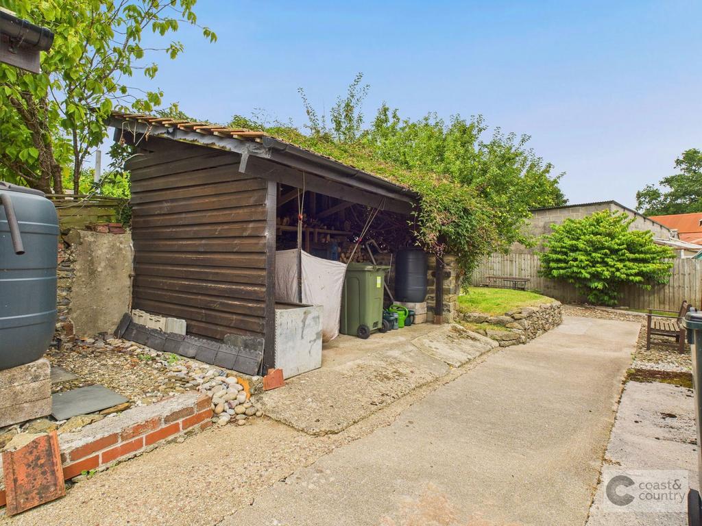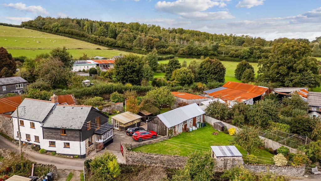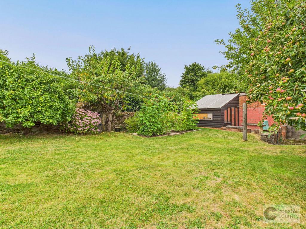 Outside there are double gates and driveway providing ample off-road parking. A gate and low retaining wall leads to the first area of garden which is predominantly laid to lawn with flower and shrub borders, apple tree and well house with a 32 foot well. There is a detached barn which can be versatile in use as storage, workshop or for garaging a car. Further outhouse/potting shed suitable for a variety of uses, covered log store and bin store with a further area of garden behind which again is predominantly laid to lawn with apple trees, cherry tree, vegetable plot, summer house, outside WC, oil tank and well stocked flower and shrub borders.