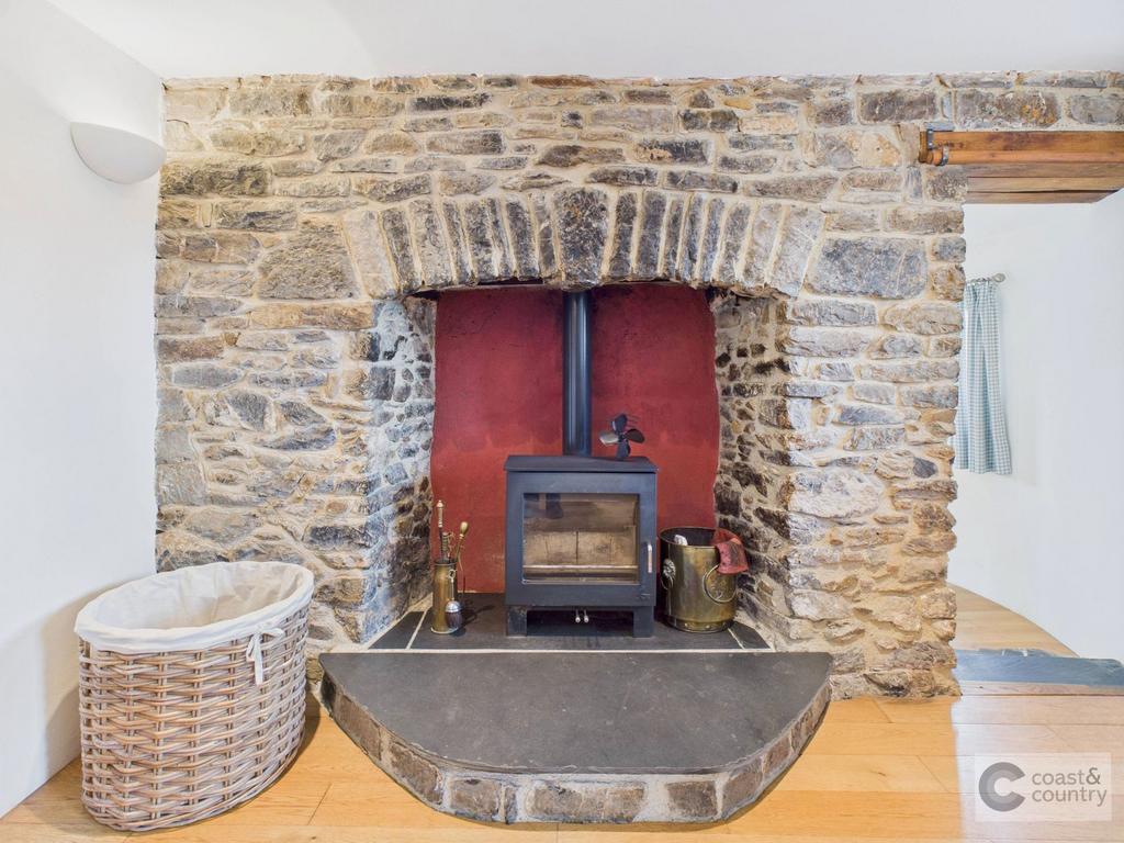 A glazed entrance door leads to the entrance porch with windows to side and front and a hardwood effect uPVC double glazed door leads to a light and airy open plan kitchen/dining room which is triple aspect with windows to front, side and rear and engineered oak flooring. The kitchen is extensively fitted with a modern range of grey shaker style units with granite worktops, inset sink unit and an integrated double oven and hob. Off the dining area is a spacious cloakroom with low-level WC with concealed cistern, circular bowl vanity sink unit and window. From the dining area steps lead into the sitting room which has a large feature inglenook fireplace with wood-burning stove, three windows to side with shutters and laminate flooring. A multi obscure glazed door leads to the snug/additional entrance porch which has tiled flooring and oak staircase to first floor, window and French doors overlooking the rear garden. There is also a utility room with plumbing for washing machine, space for fridge freezer, larder cupboard, tiled flooring and boiler room with cupboards.
