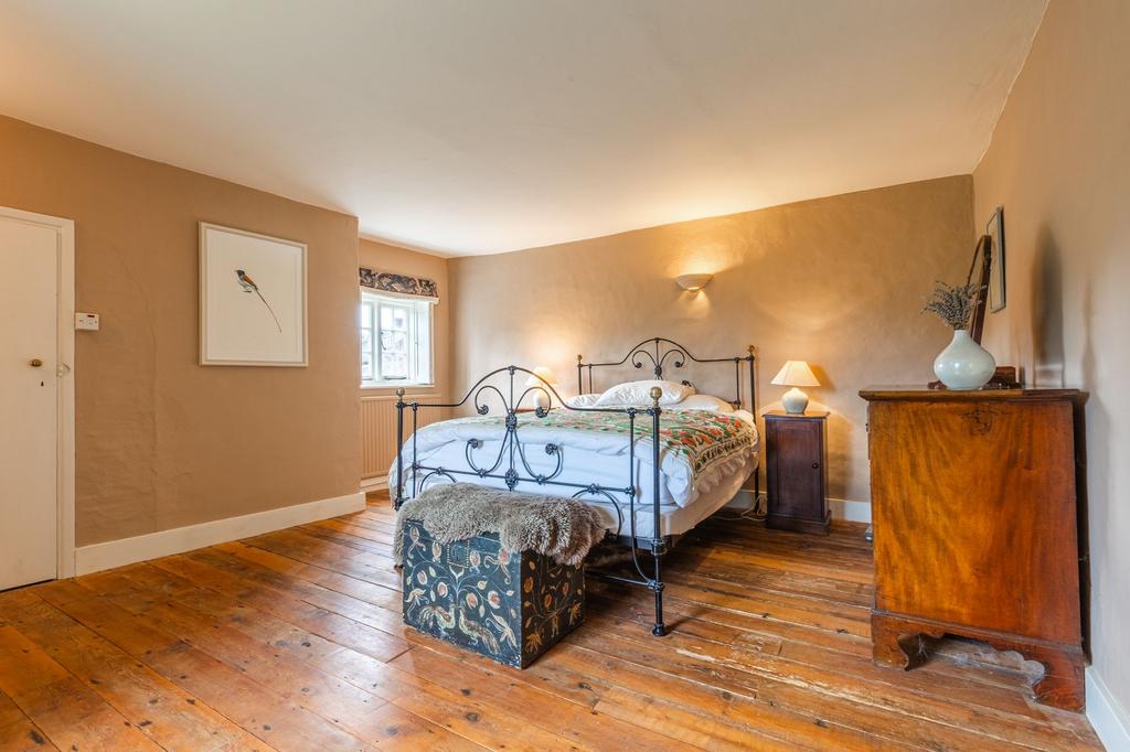 Inside, the cottage opens into a welcoming hallway, leading to a sitting room with French doors onto the garden and a cosy open fire. The heart of the home is the hand-built kitchen, fitted with rich Iroko hardwood worktops, flowing through to the generous dining room – perfect for family gatherings. The drawing room’s impressive inglenook fireplace and timber beams set a timeless tone, while a utility room and ground-floor cloakroom add practicality. Upstairs, three bedrooms and a family bathroom await on the first floor, with the second floor providing a spacious, recently converted fourth bedroom bathed in natural light.