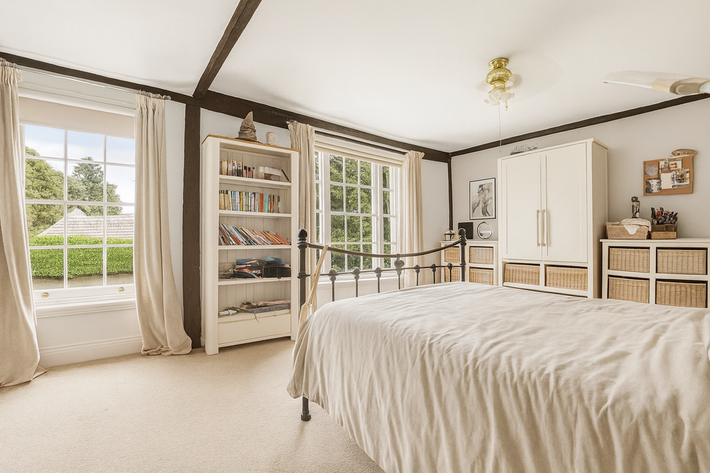 Dating back to the early 18th Century, The Clock House is one of Sawbridgeworth’s most distinguished residences, an elegant, double-fronted Georgian home steeped in history and character. This substantial six-bedroom property spans over 4,700 sq ft and occupies a generous plot of approximately one-third of an acre, right in the centre of town.