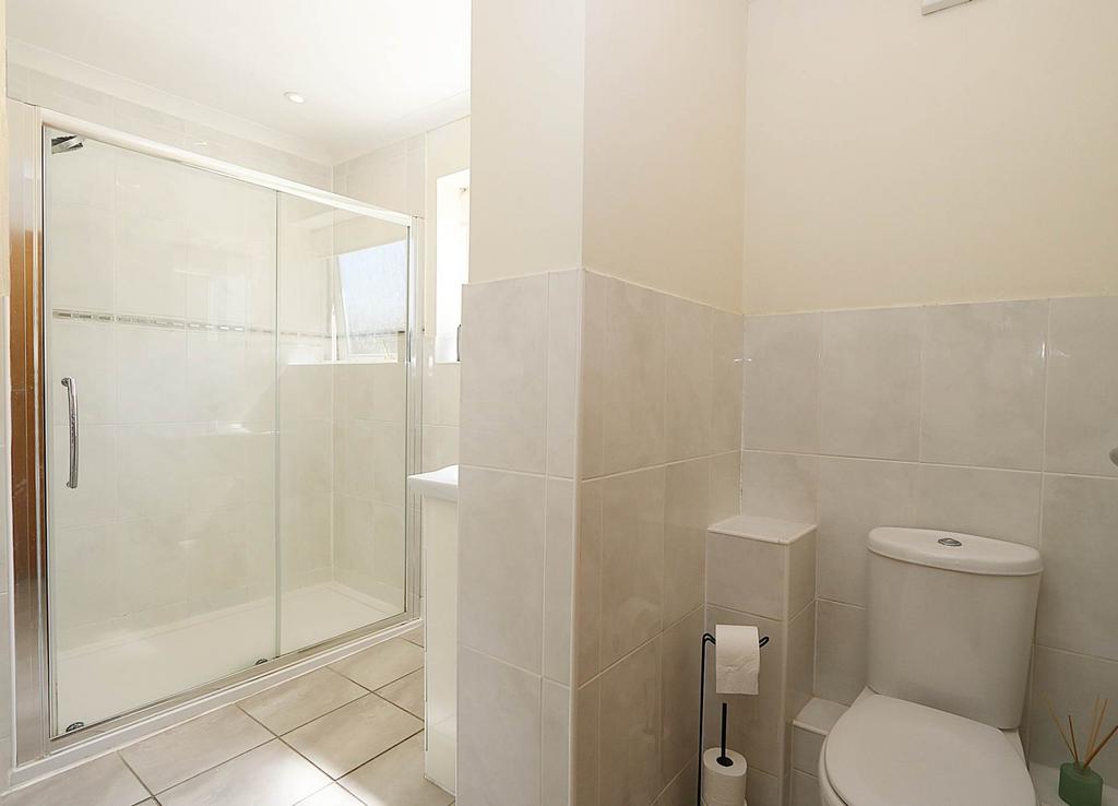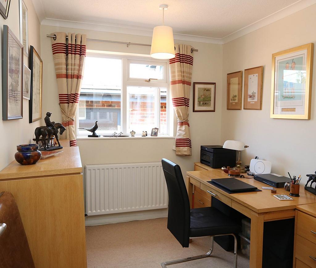 • First floor has 3 bedrooms; 2 doubles and a large single (presently used as a study), with main bedroom overlooking the rear garden, with an ensuite shower room