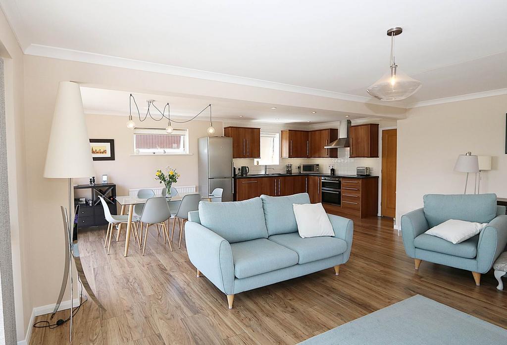 • Sitting room area has a gas fireplace, the kitchen is fully fitted with double oven, ceramic hob, fitted Neff dishwasher and lots of storage