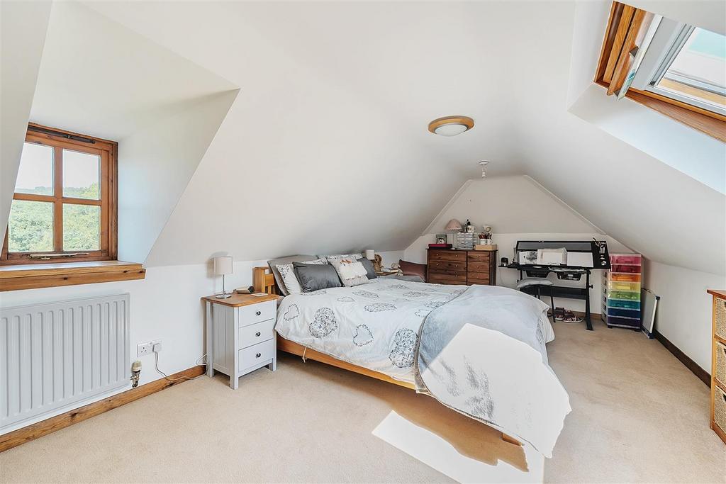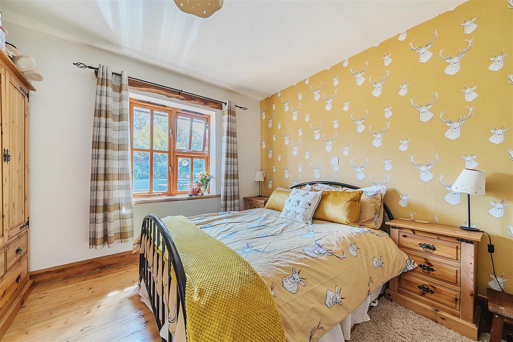 On the first floor, there are two well-proportioned bedrooms, one featuring built-in wardrobes and the other an airing cupboard both offering views over the paddock. The family bathroom includes a hand wash basin, WC, and bath.