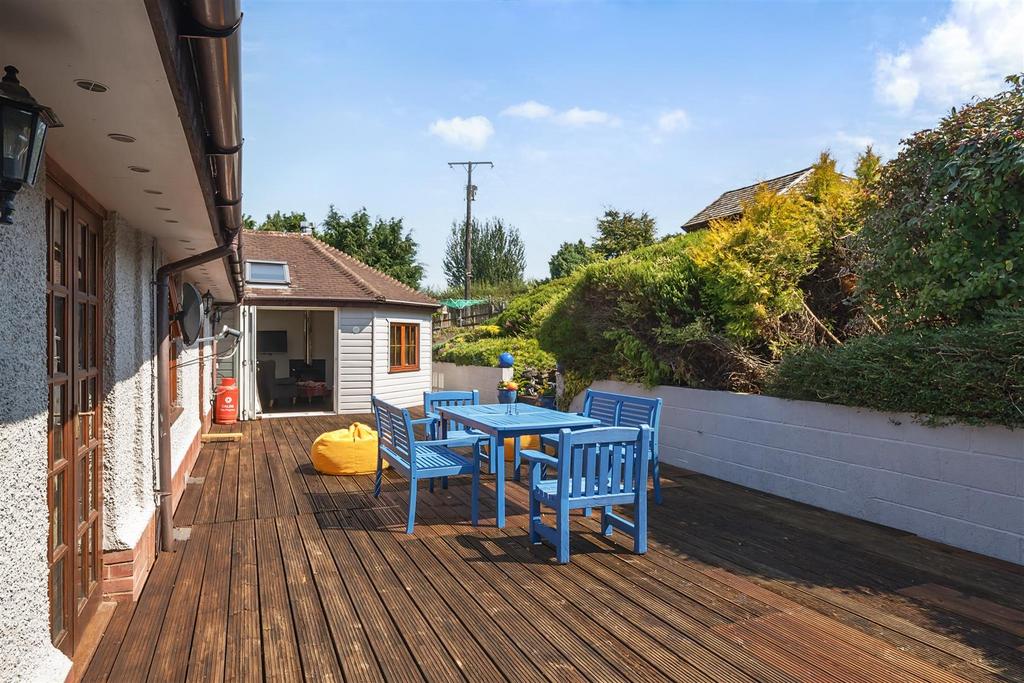 Outside - A gated driveway provides off-road parking for several vehicles, with lawned areas to the front and side of the property. Large detached workshop and double garage with store above. To the rear, a large decked area overlooks the mature gardens, with steps rising to a covered seating area. The grounds include a small orchard with fruit trees, vegetable beds, a greenhouse, summerhouse, and garden shed. Beyond lies a fenced paddock, with the whole plot extending to approximately one acre. Extra land available to buy or rent by separate negotiation.