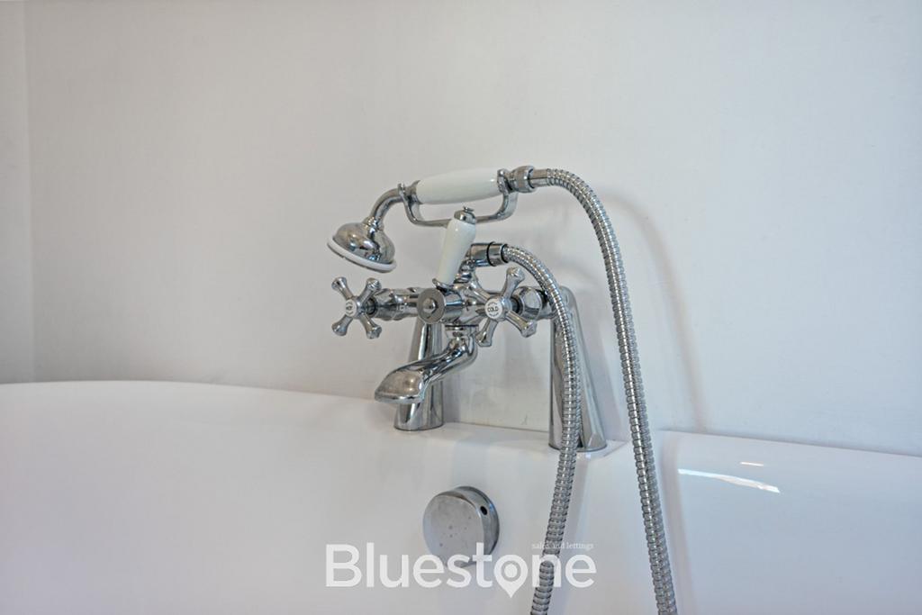 The kitchen and dining area feature herringbone flooring, while the hallway showcases original Victorian tiled flooring, adding a touch of history. Relax in the spacious front facing living room complemented with sash windows, or entertain effortlessly in the meticulously designed kitchen with a stunning island, ample storage, and integrated appliances. French doors lead out to the spacious rear garden, offering potential for creating a beautiful outdoor retreat. Both the family bathroom and en suite feature free standing baths, enhancing the sense of luxury. With a downstairs WC and perfect entertaining space, this property is designed for modern living while honouring its heritage.