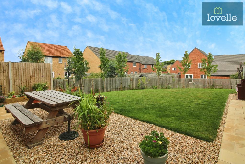 Culinary enthusiasts will be drawn to the heart of the home, the stylish open-plan kitchen living diner. This contemporary space runs the full width of the property and is equipped with a comprehensive range of integrated appliances, including a four-ring induction hob with extractor, electric fan oven to face height with additional microwave oven, integrated dishwasher, and a generously sized fridge freezer. The expansive island unit provides excellent workspace and a sociable focal point along with more storage and worktop space, seamlessly connecting to the dining area for family meals and informal gatherings. Abundant natural light filters through, while patio doors open directly onto the sunny garden, creating a wonderful indoor-outdoor flow ideal for al fresco dining and garden parties. A practical utility room adds valuable additional space for laundry and household management.