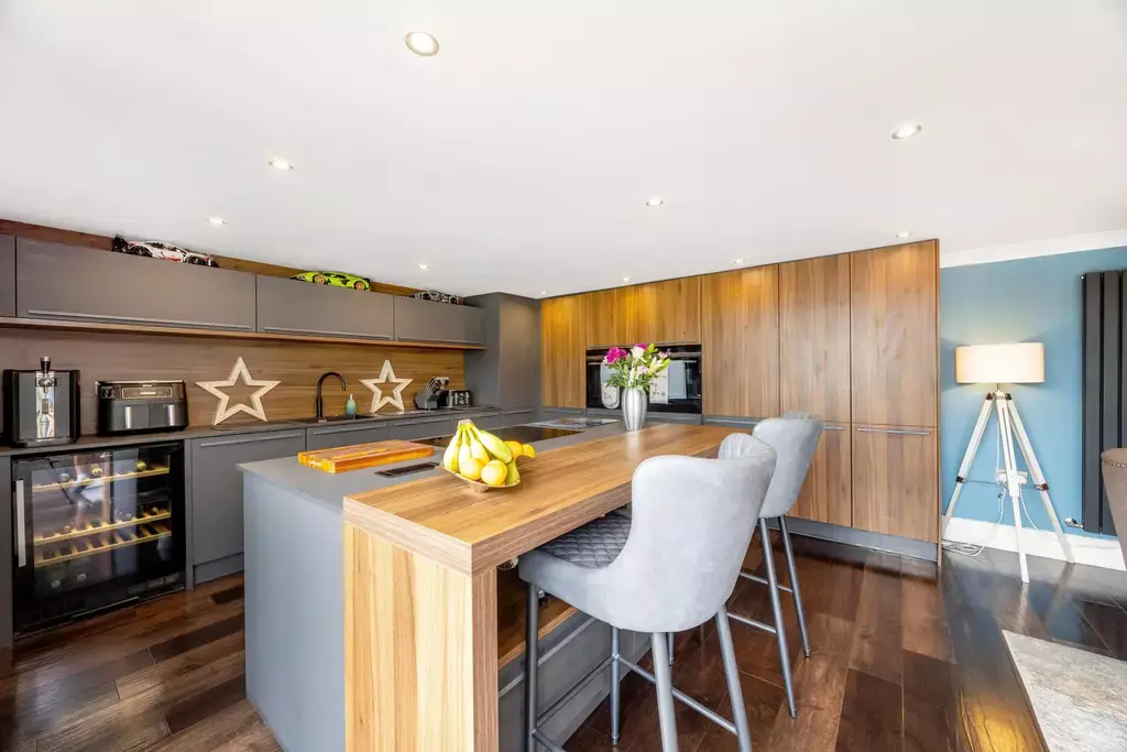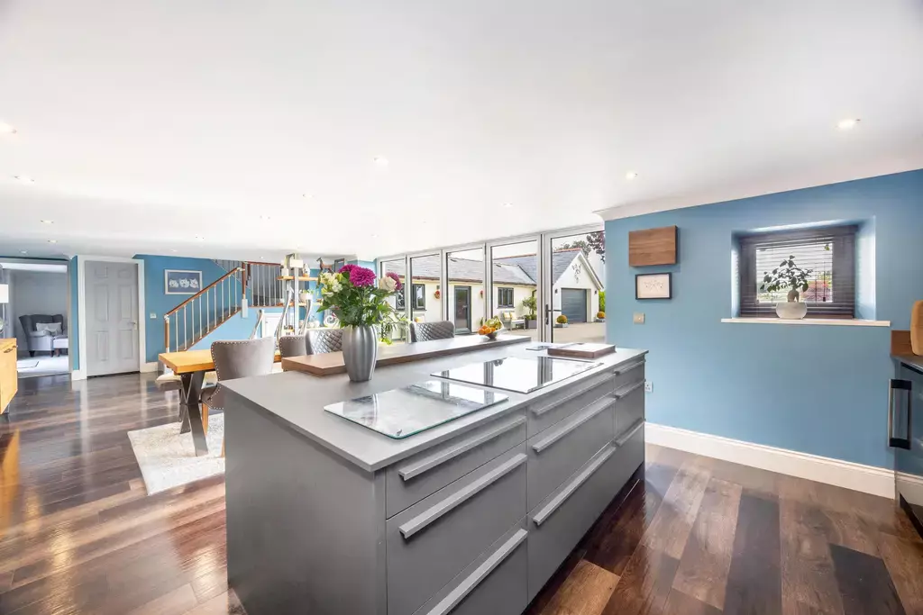 - Magnificent contemporary dining kitchen and family room with bi-folding doors opening to the attractive courtyard