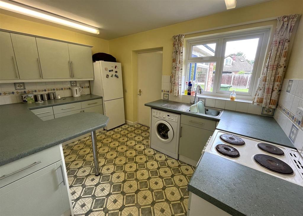The front door opens to the entrance hall with sitting room with fireplace to the front left hand side, overlooking the front lawn. The kitchen is to the rear of the bungalow and is fitted with a range of wall and base units. Off the kitchen there is a further reception room which is very versatile and couple be used for a variety of purposes. There is a bathroom and separate w.c. On the right hand side are two bedrooms, both with fitted cupboards for storage.