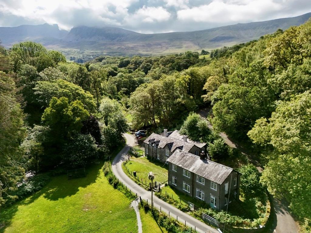 Set within its own wooded ravine on the lower slopes of Cader Idris, the property enjoys an outstanding location. Its grounds feature a camping field, ancient woodland, a river with a bridge and island, and a beautiful mountain stream with natural pools, perfect for a refreshing swim. The grounds extend to approximately 6.41 acres in total.