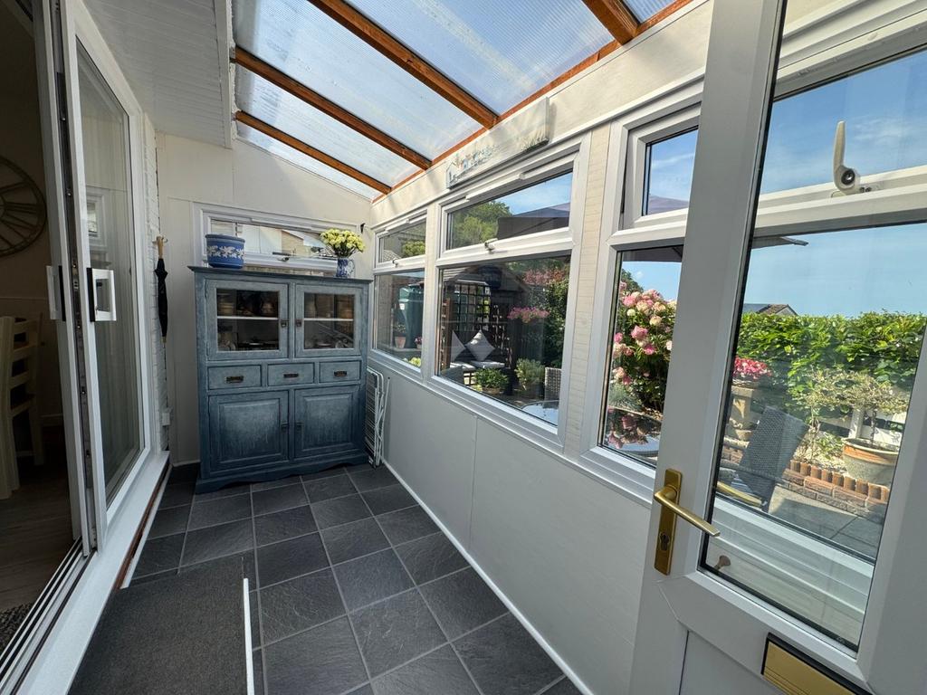 5' 0" x 12' 4" (1.52m x 3.76m) with vinyl flooring and windows to all sides overlooking garden, side door to garden, electric socket.