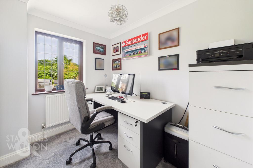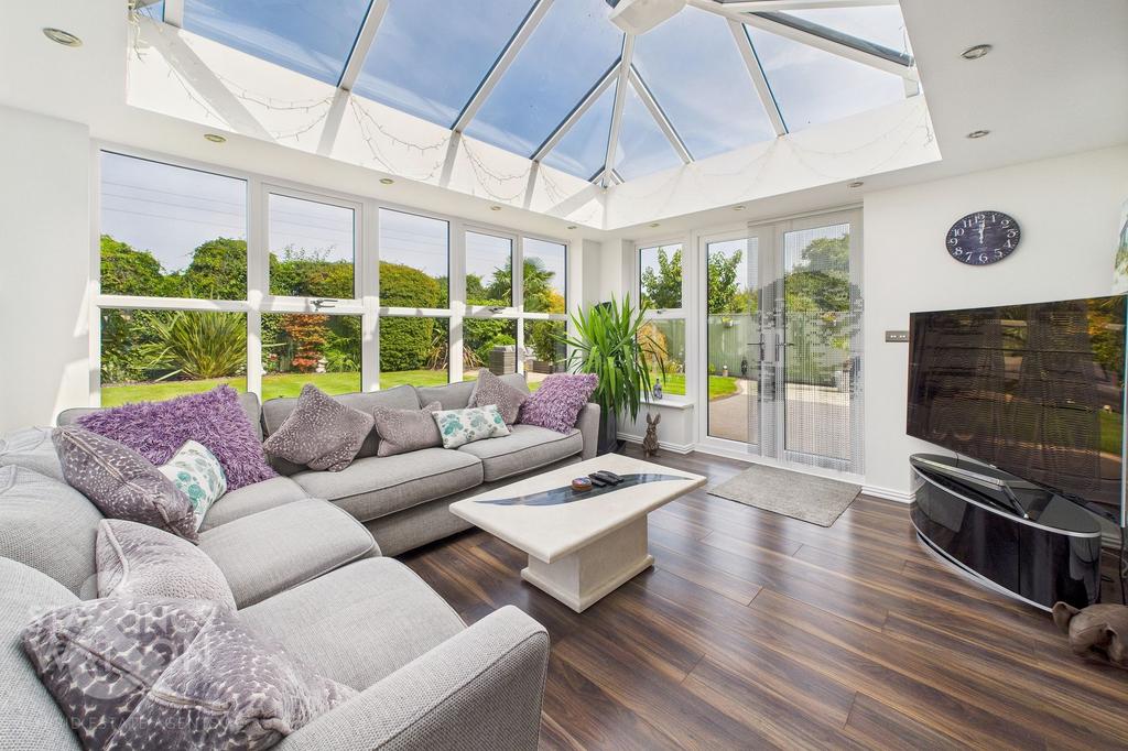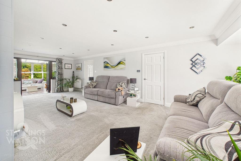 NO CHAIN! Guide Price £550,000-£575,000. Set within a tranquil CUL-DE-SAC, this expansive DETACHED HOUSE offers a haven of modern comfort and private living. Spanning over 1,800 sq. ft (stms) of living space, the property boasts a GRAND HALLWAY ENTRANCE, complete with INTEGRAL STORAGE and a convenient two-piece W.C. To the left, The spacious 27’ SITTING ROOM enjoys a DUAL ASPECT, with doors opening to the GARDEN ROOM, providing panoramic views and FRENCH DOORS leading out. The separate DINING ROOM offers a cosy setting for family meals. Adjacent, the versatile STUDY could double as a fifth bedroom providing flexibility. The high specification KITCHEN is a culinary delight with INTEGRATED APPLIANCES and a BREAKFAST BAR, complemented by a UTILITY ROOM for added convenience. Upstairs, FOUR DOUBLE BEDROOMS await, each offering comfort and space, with a stunning four-piece FAMILY BATHROOM catering to daily needs. The MAIN BEDROOM features a modern ENSUITE SHOWER ROOM, with a double open shower and a glass splashback. Outside, a generous BRICK WEAVE DRIVEWAY leads to a separate DOUBLE GARAGE, while stunning LANDSCAPED GARDENS provide a PRIVATE REAR ASPECT to savour.