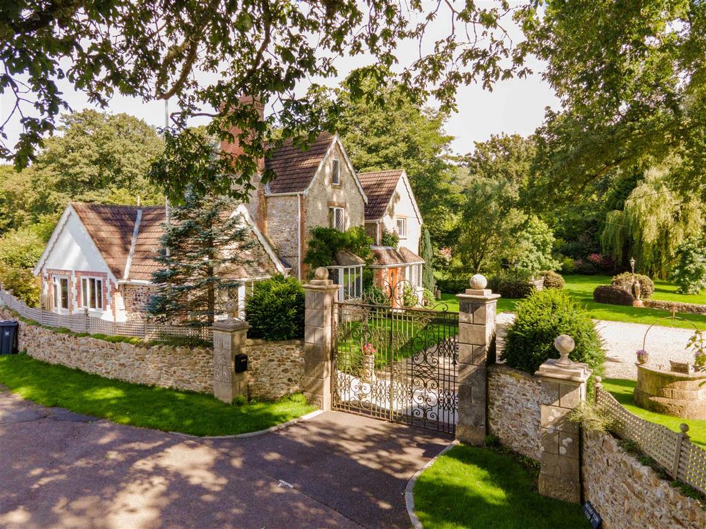 An impressive Victorian former lodge house with gated drive and stream, in approximately 2 acres of parkland gardens. 5 Bedrooms, 4 bathrooms, potential 1 bed annex, 3 reception rooms. Ample parking and stables. EPC Band G