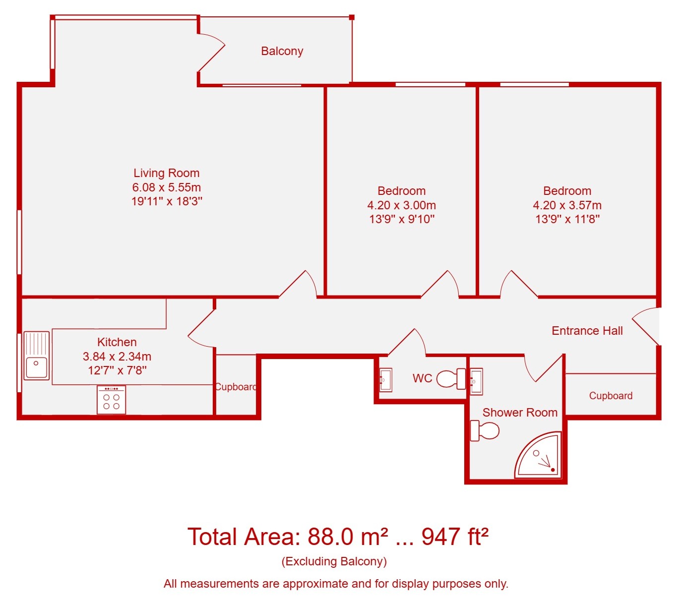 SPACIOUS ENTRANCE HALL * DELIGHTFUL DOUBLE ASPECT LIVING ROOM * KITCHEN * 2 DOUBLE BEDROOMS * SHOWER ROOM * SEPARATE W.C. * BALCONY * CENTRAL HEATING