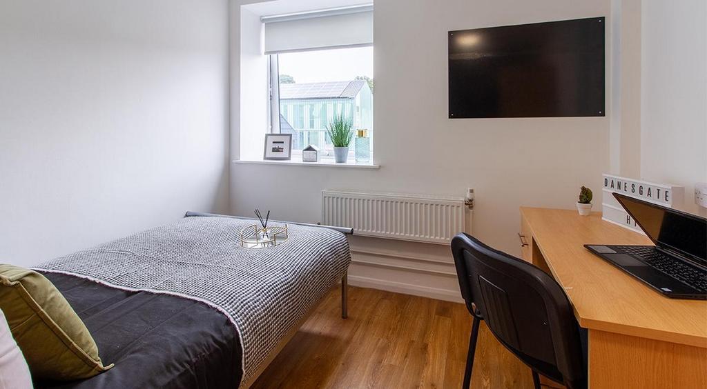 ?Danesgate House, located at 49 Clasketgate, Lincoln, LN2 1LA, offers a variety of student accommodation options designed to cater to diverse preferences. The property features en-suite rooms and studios, each thoughtfully designed with comfortable beds, study areas, ample storage, and modern en-suite bathrooms. Shared flats provide communal kitchens and living areas, fostering a vibrant social environment, while studios offer private kitchenettes for those seeking more independence. The building boasts amenities such as high-speed wired internet (up to 1Gbps), communal lounge, CCTV security, onsite maintenance, and a laundry room. Its central location places residents within walking distance of the University of Lincoln, Lincoln College, and Bishop Grosseteste University, as well as the city's shopping districts, restaurants, and cultural landmarks. This strategic positioning ensures that students have convenient access to both academic institutions and leisure activities, making Danesgate House an ideal choice for student living in Lincoln.