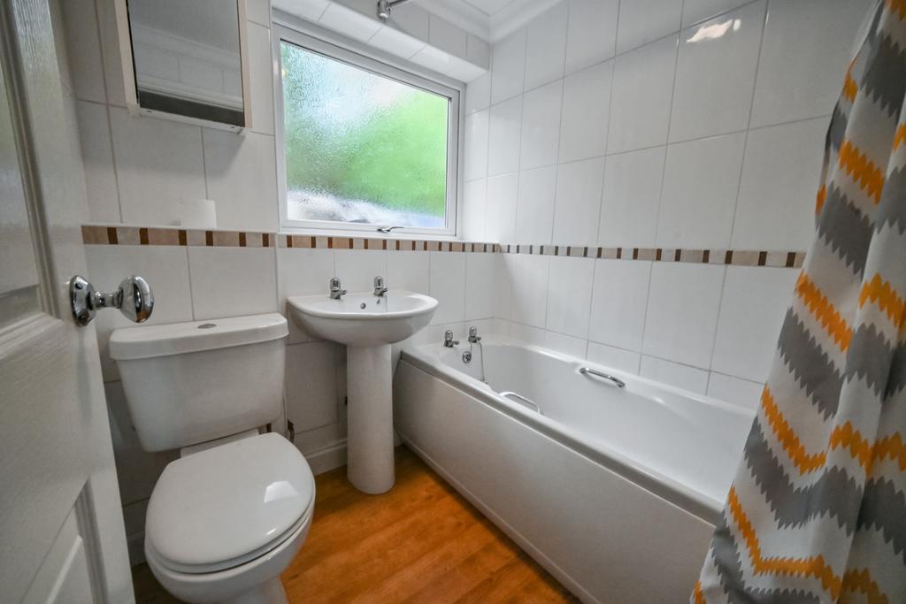 Bathroom: Fitted with a smart white suite comprising panelled bath with shower unit over, pedestal wash hand basin, low level WC, tiled walls, coved ceiling, laminate flooring and double glazed opaque window to rear.