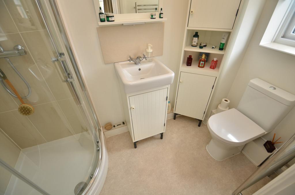 Double glazed window to side, low level WC, wash hand basin, shower, radiator.