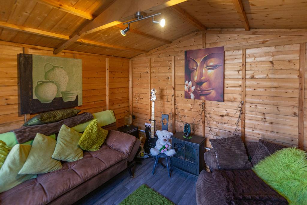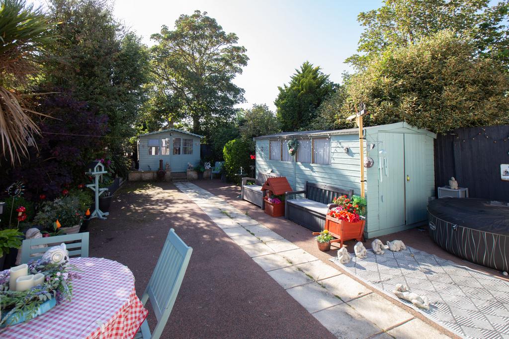 Externally, the property enjoys a private, low-maintenance rear garden with mature borders and a detached summer house – perfect for use as a hobby space or garden retreat. To the front, a driveway provides off-street parking.