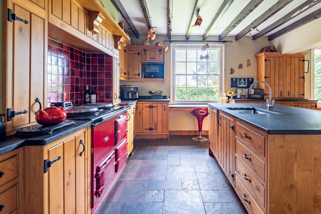 The front door opens to an impressive central hallway, linking four of the primary spaces, namely the dining room, drawing room, living room and kitchen/breakfast room. The three aforementioned reception rooms have delightful views over the gardens and wonderful period features including fireplaces and exposed beams. The kitchen breakfast room is a wonderful open plan space, with a range of solid wood units and a central island. Adjacent to the kitchen breakfast room is a generous boot room (with external access), a utility room and pantry. A delightful study, rear hallway and downstairs shower room complete the ground floor accommodation. Stairs to the cellar are found in the main hallway.