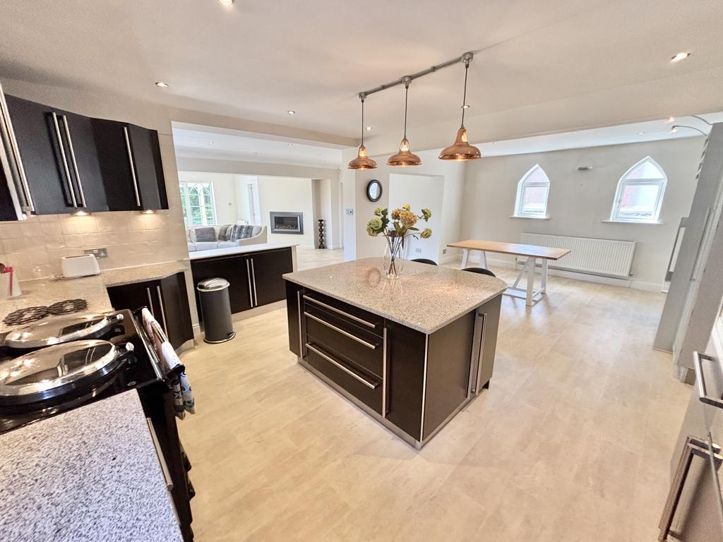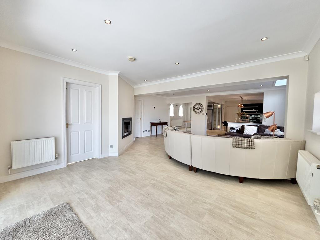 Truly breathtaking open plan family room/dining area, UPVC double glazed patio doors and windows leading onto the rear garden, dual aspect velux windows, UPVC double glazed window to the side aspect, inset gas fire, room for large seating area perfect for entertaining, radiator.