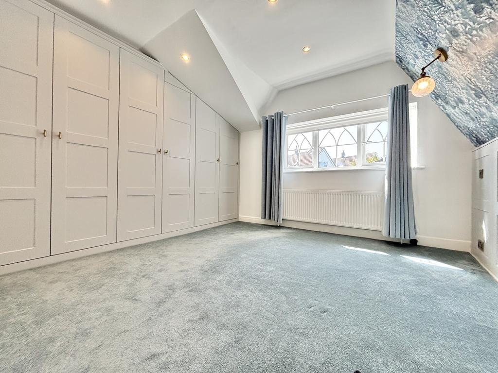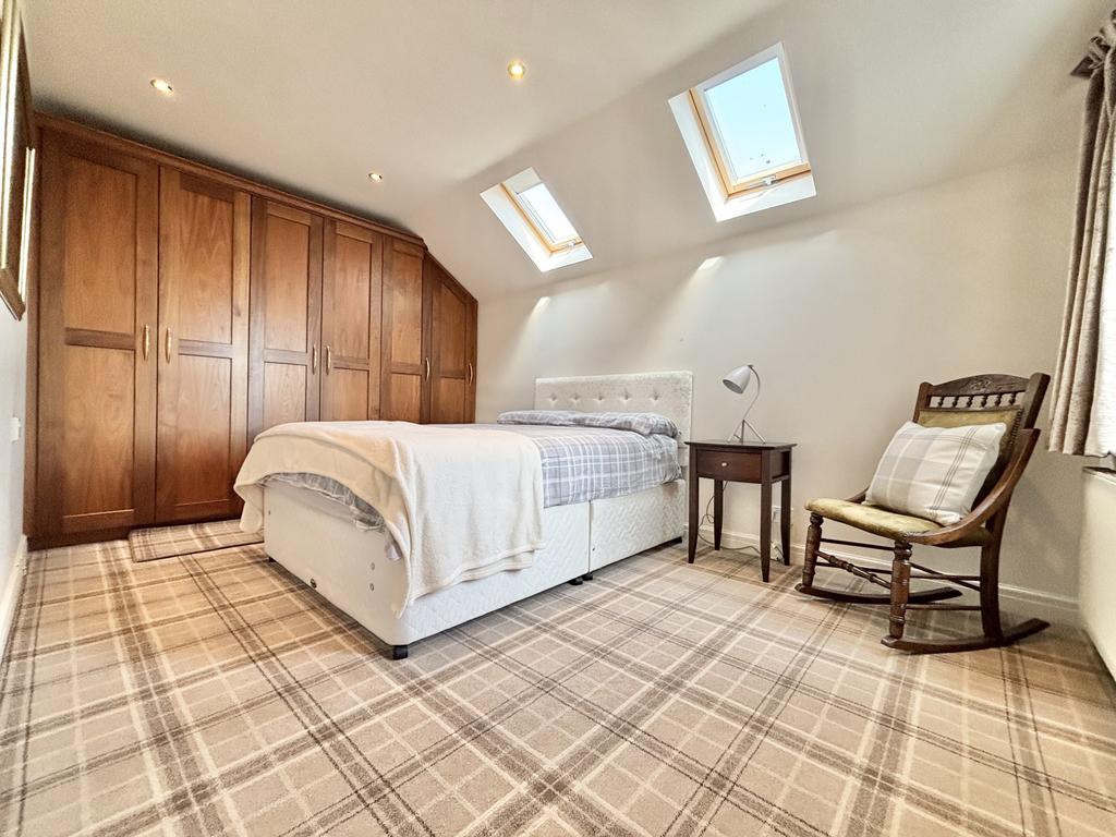 Dual double glazed velux windows, a range of fitted wardrobes/storage, radiator.