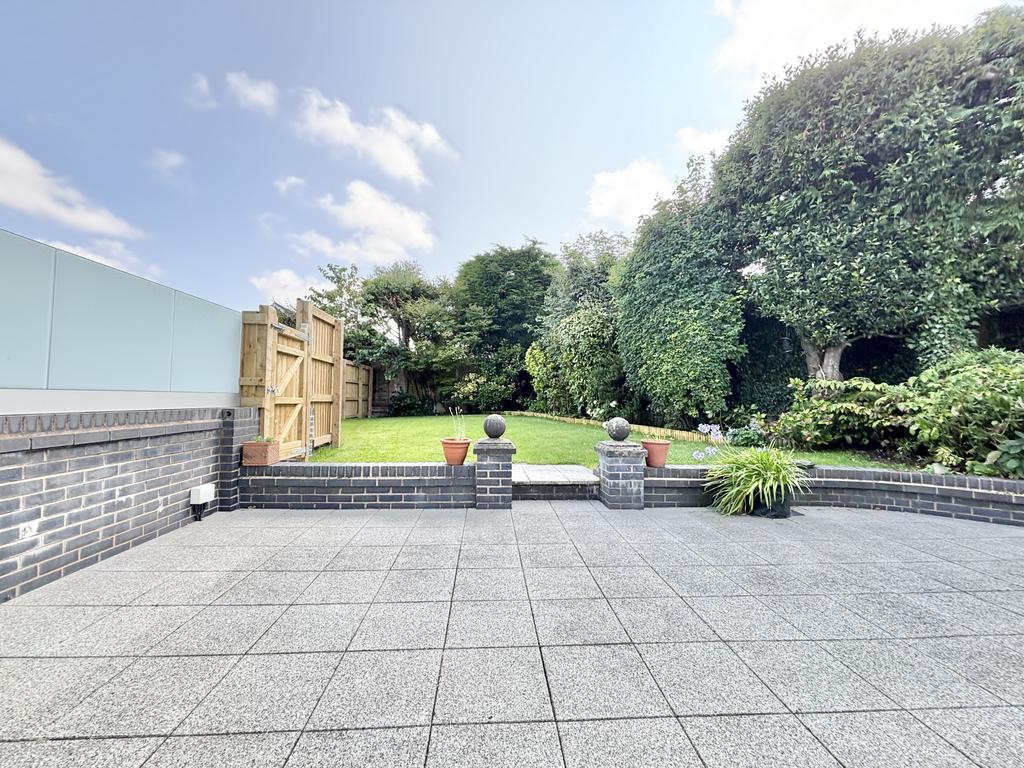 Enclosed SOUTH facing rear garden, mainly laid to lawn with patio area, gated access to the side allowing access to additional private parking and garage.