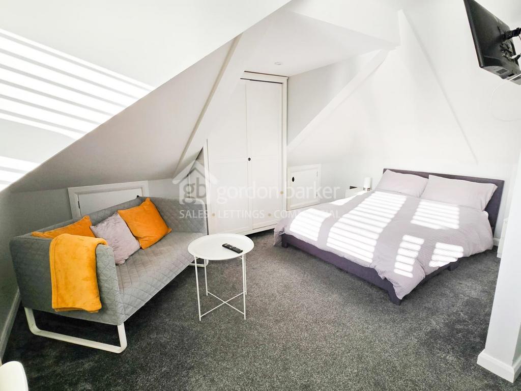The property is accessed via a ground floor entrance with stairs to the first floor and the main living accommodation. The large living room has bay window and a built in unit with electric fireplace. The modern kitchen is wall and floor mounted units with ‘Butler Sink’, integral gas hob, oven and fridge freezer. There are two double bedrooms on this floor, one with ensuite shower room and the other with Juliet Balcony and fitted wardrobes. Finally on this floor is a family bathroom with bath with shower over, wash hand basin and WC.