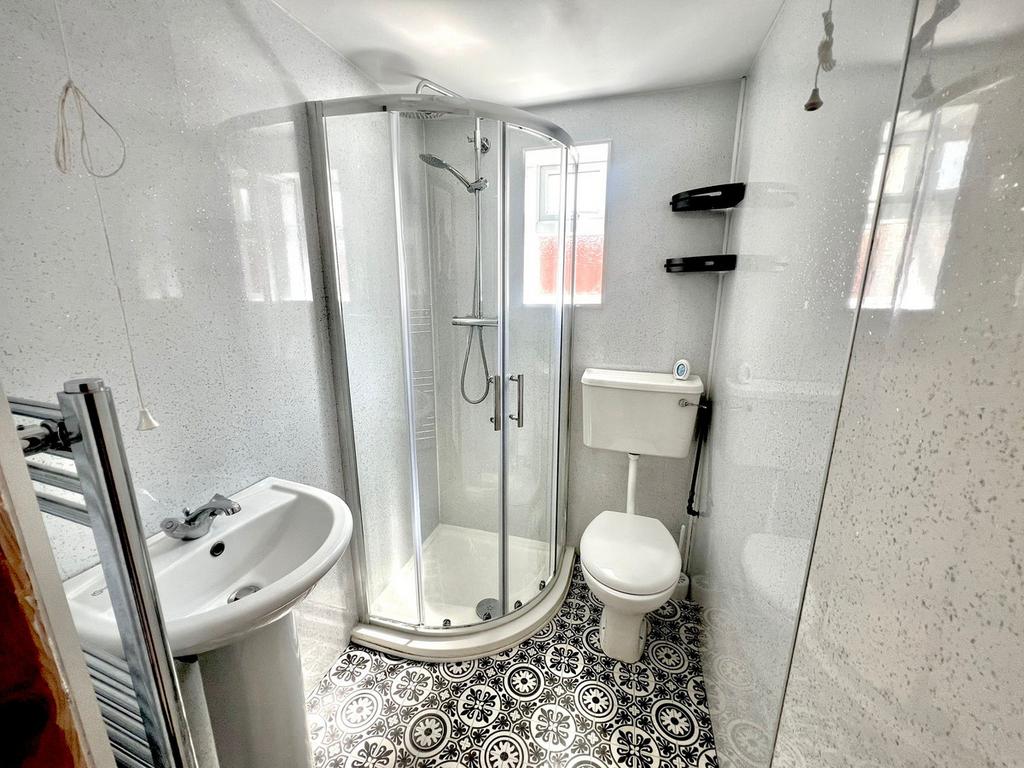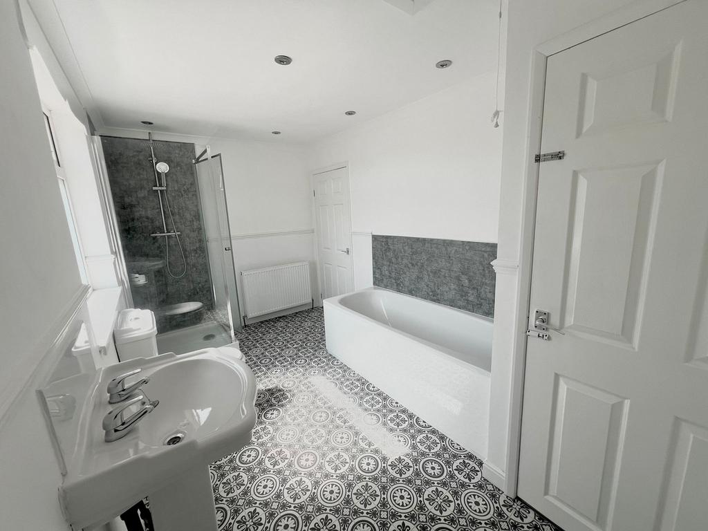Upstairs is a stylish family bathroom, complete with a bath, shower, WC and sink.